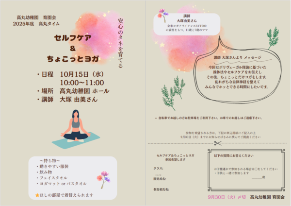 TOP > 育園会主催「セルフケア&ちょこっとヨガ」のご案内